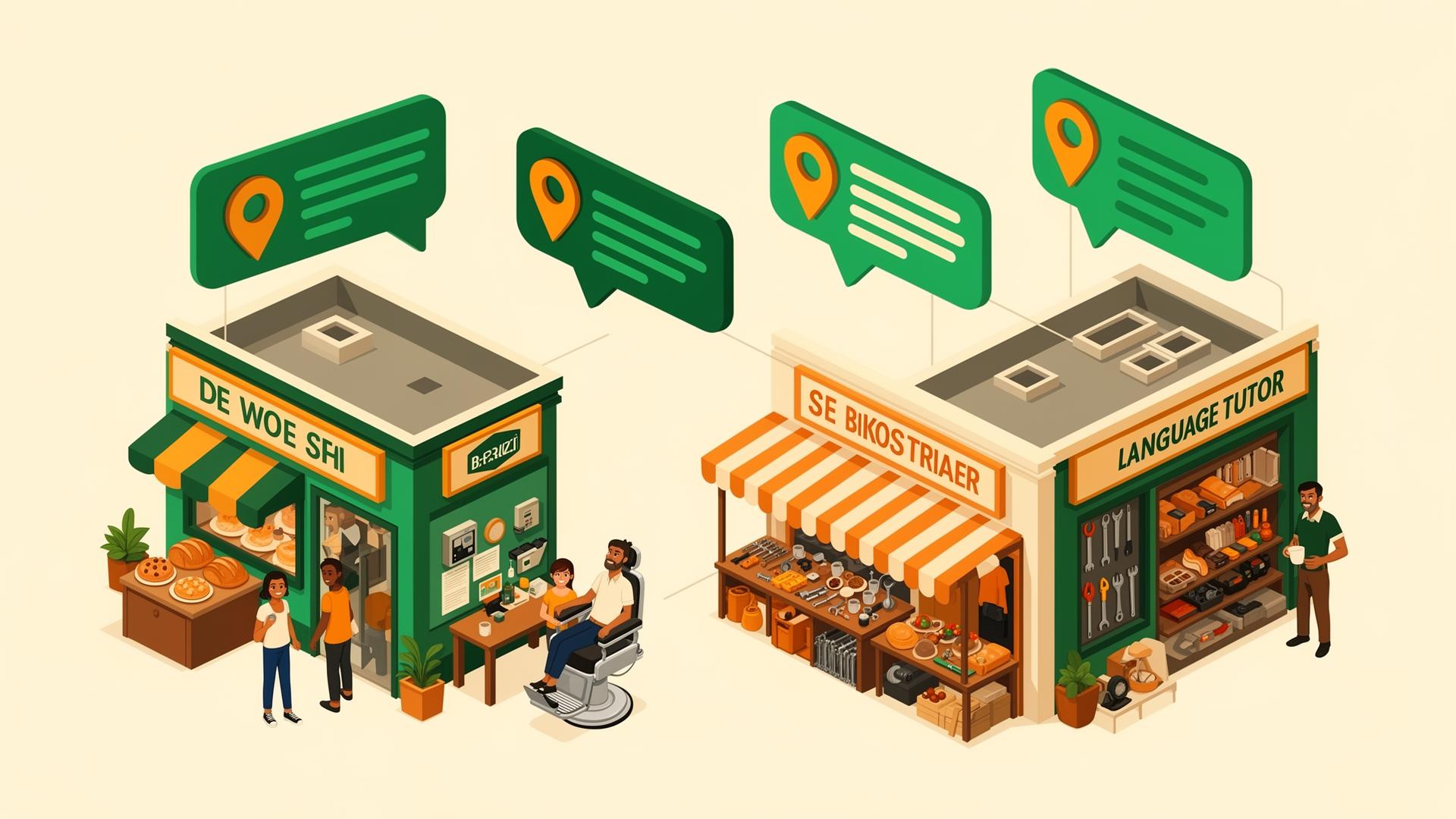 No chatbot, alguém manda 'preciso de aula de inglês' ou 'cabeleireiro perto de mim'.